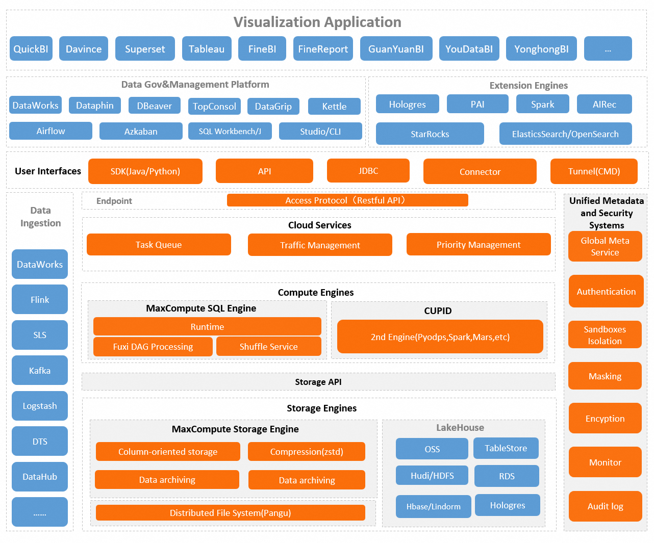 MaxCompute(原名ODPS,Open Data Processing Service)是阿里云提供的企业级云原生大数据计算服务,定位于PB/EB级数据仓库解决方案,采用Serverless架构,资源弹性扩展,提供全托管、高扩展的分布式存储与计算能力。同时还提供离线和实时的数据接入,支持大规模数据计算及查询加速能力,为您提供面向多种计算场景的数据仓库解决方案及分析建模服务。
