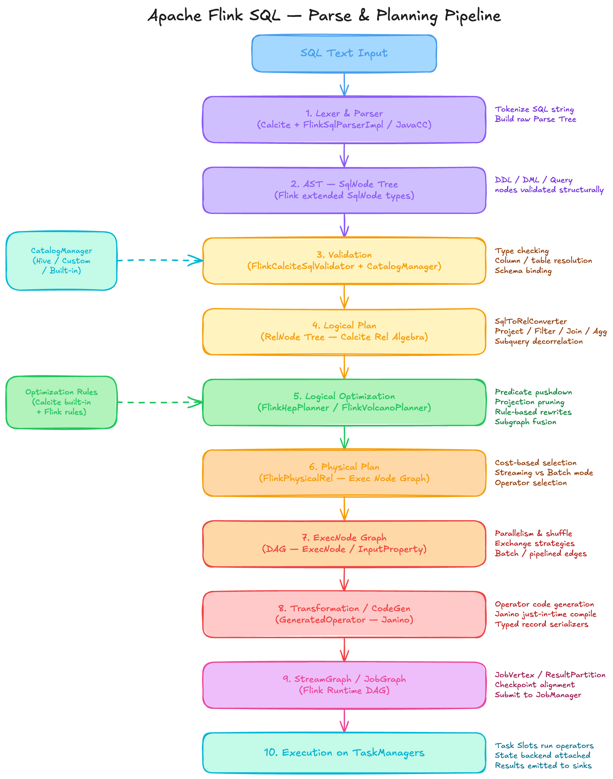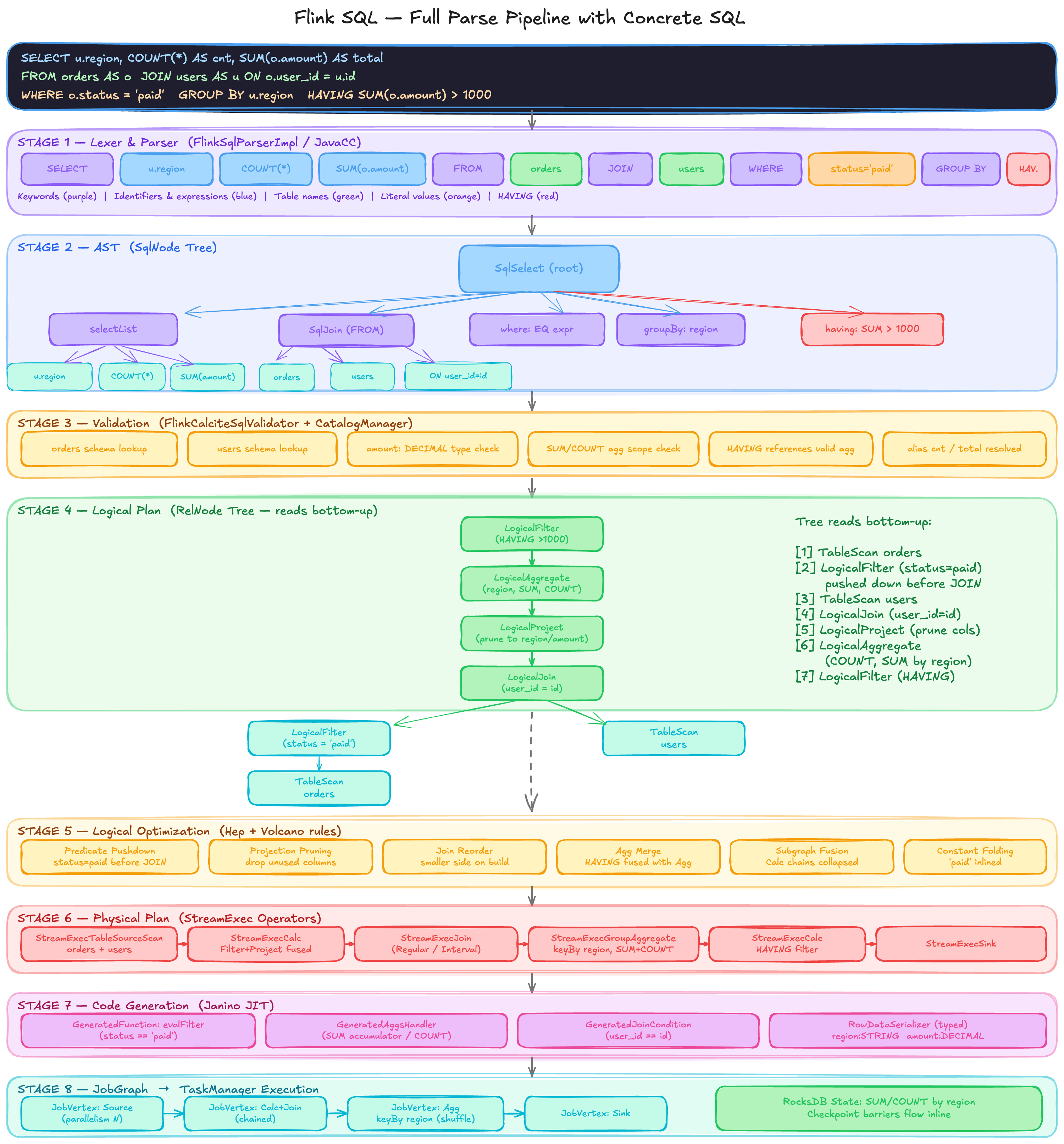Flink SQL — Full Parse Pipeline with Concrete SQL