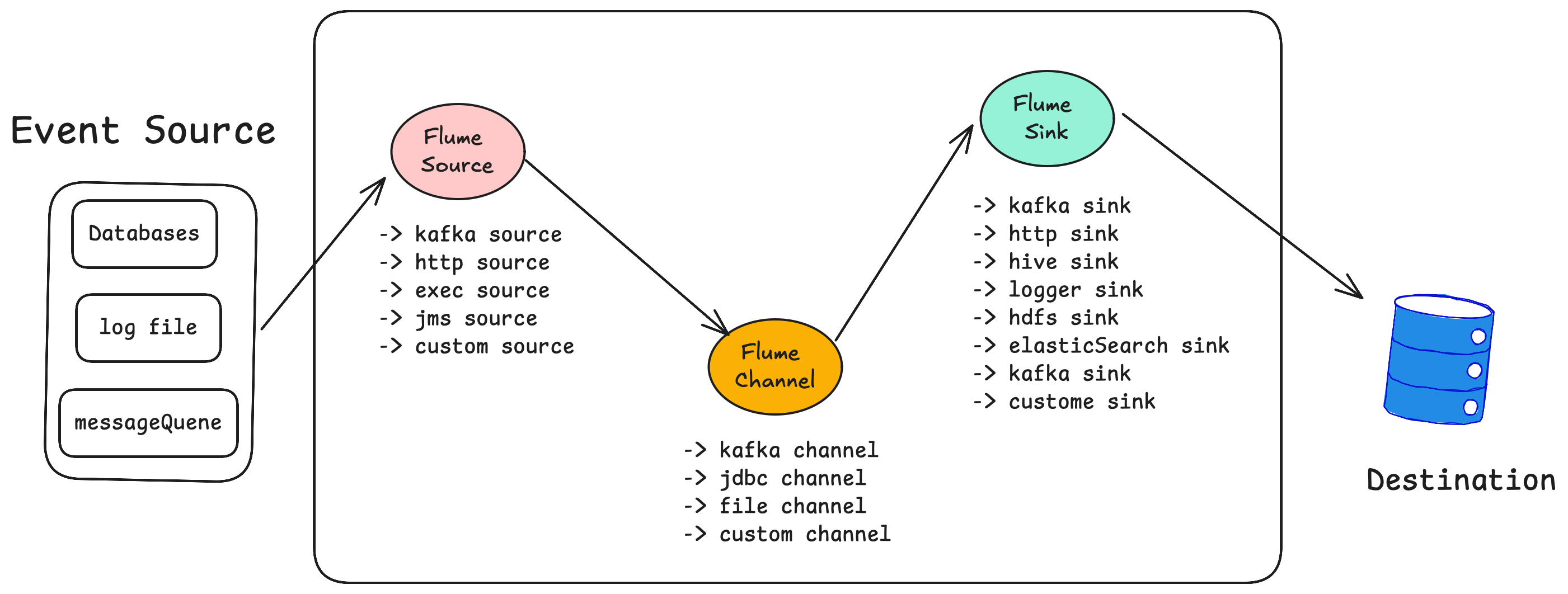 Flume的Source,Sink,Channel的作用 - Source组件是专门用来收集数据的,可以处理各种类型. 各种格式的日志数据,常用Source类型 - 监控后台日志:exec - 控后台产生日志的端口:netcat - Channel组件对采集到的数据进行缓存,可以存放在Memory或File中 - Sink组件是用于把数据发送到目的地的组件